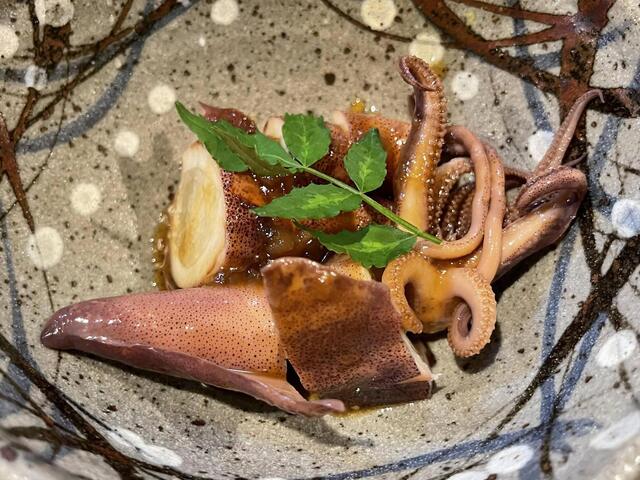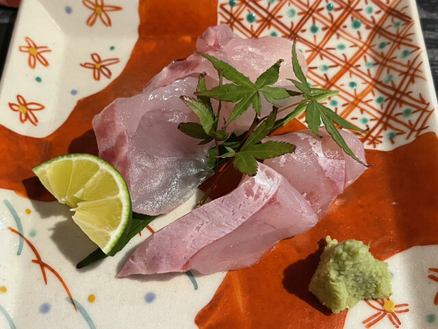 お刺身は、あかみずと、しめ鯖。あかみずは甘く、最近あまり食べられていない鯖がおいしい。