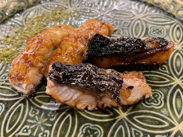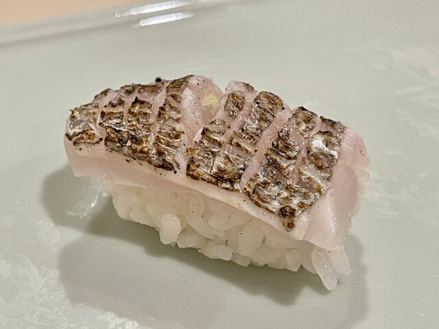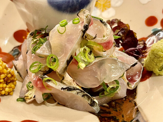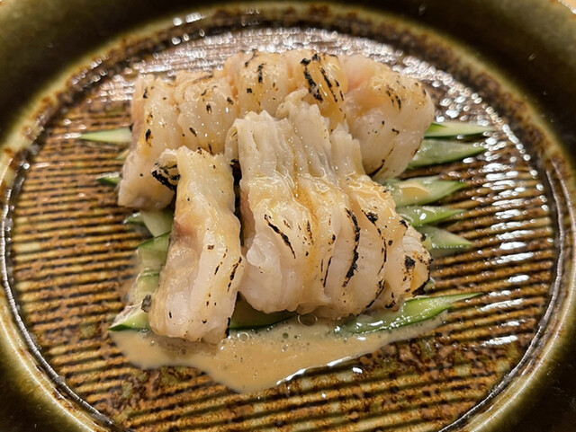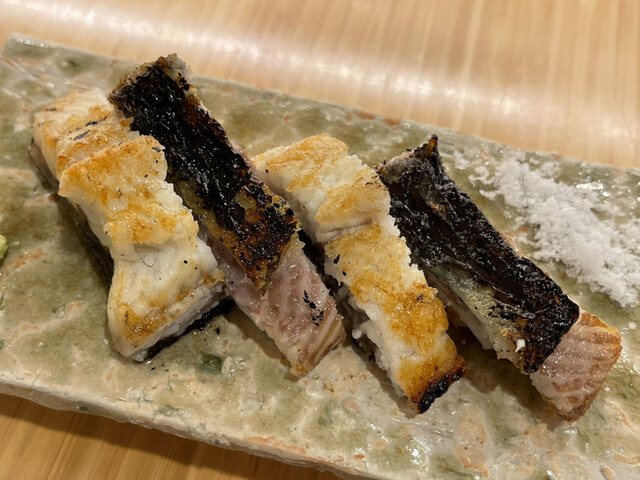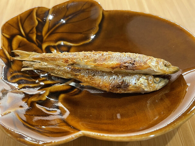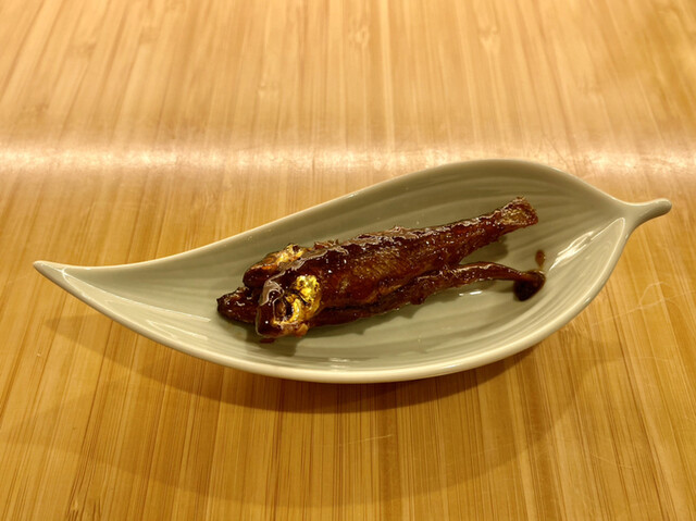 まじかは、いつもと仕立てを変えて、骨切り、油焼きしたものをさらに皮を炙って。皮のおいしさが際立つ。