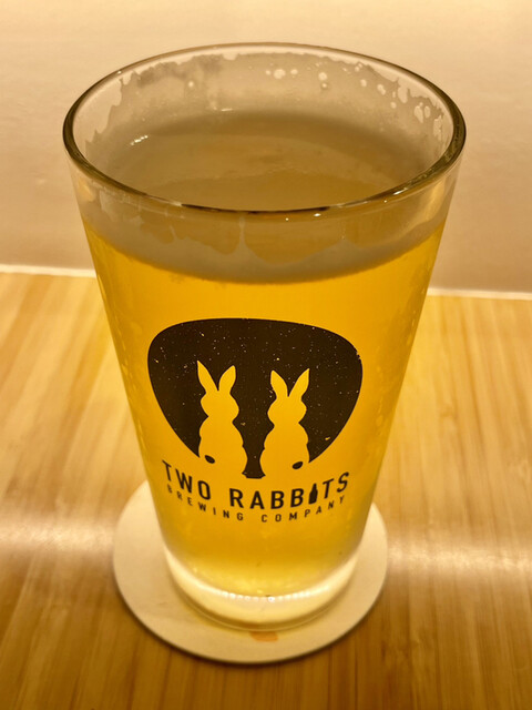 いつものTwo Rabbitsのパイントでスタート。お通しは、氷魚の釜揚げと佃煮。