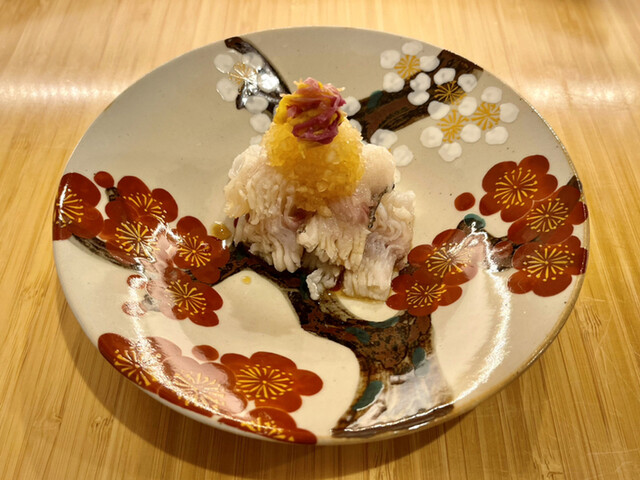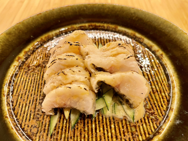 今日は蛤があったので、宮津の白ばいとわかめのぬたにしてもらった。ぜいたくな貝のぬたで最高。