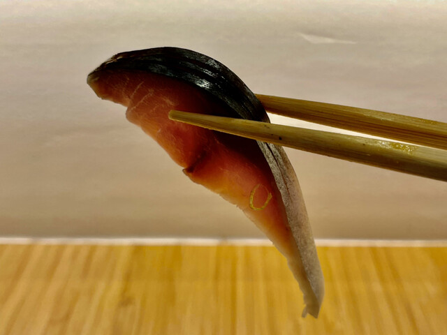 握りは、煮蛤、ひらめ、生さば、太刀魚、炭焼き鰻、鮒きゅう巻き、トロたく巻き。