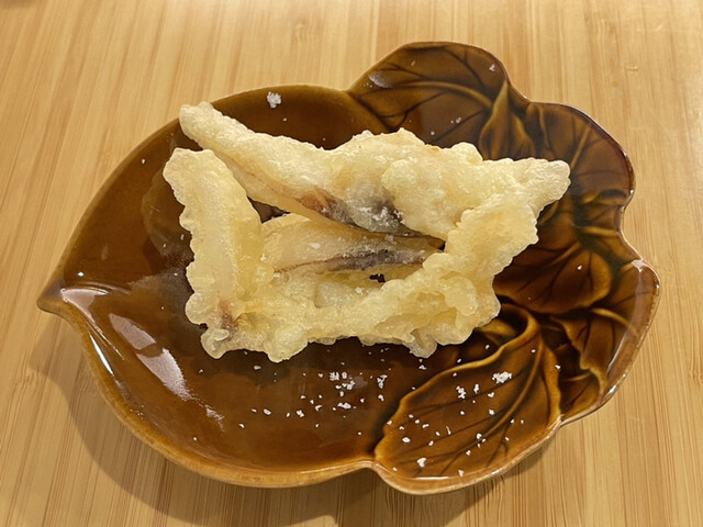 最後に、雲子を日本酒をくぐらせてさっと上げたのを出してくれた。これはもう一回日本酒が必要。
