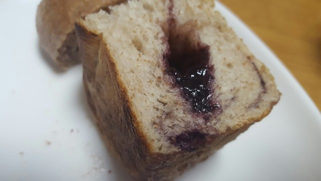 ブルーベリーブレッドはオーガニックの岩手産ブルーベリーのジャムが入っています。結構ジャムが入っていますが、やはりこちらも甘ったるくなく、いいお砂糖で煮込んであるな、と思います。ふわふわのパンです。