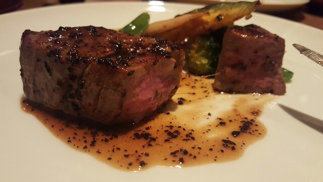 メインディッシュより1品 (私は牛フィレ肉のポワレソースペリゴール+600円をチョイス)