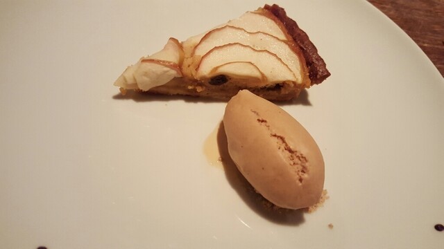 デザートですが、リンゴとラムレーズンのタルト、一見普通っぽいのですが、こちらもリンゴがしっかりと酸味がきいており、また十分なラム酒が使われていて美味しかったです。手作り感あふれるシナモンのアイスも美味しかった!