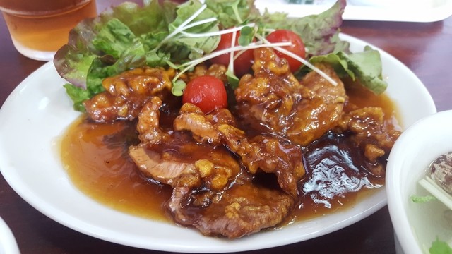 10分ほどしてまず定食が出てきました。スープはアサリが一つでシンプルですがネギの香りもしてなかなか美味しいです。しょっぱくないのが◎。黒酢の酢豚は、黒酢が効きすぎてきつい酸味のものが主流の中、とてもマイルドな酸味で脂っこくなくさっぱりしています。豚肉も食べやすい大きさで柔らかく、彩り鮮やかなピーマンと玉ねぎ、パクチーがのっています。ご飯もちょうどいい固さ。盛り付けもきれいですね。