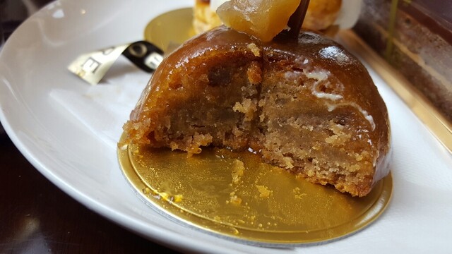 次にガトーマロン。なんと焼いていないケーキ、初めていただくタイプのケーキでした。中はマロンのクリームというよりペーストでどっしりとしています。周りのアプリコットグレーズ甘酸っぱさと相まってさらに美味しさが増すのです。こちらも信じられないおいしさです。感動。