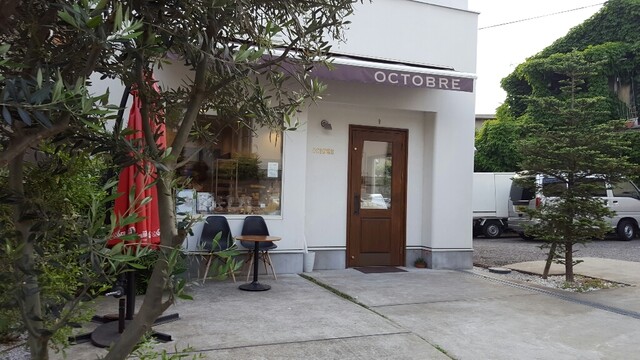 休日の午後に訪れました。三軒茶屋の駅から茶沢通りを下北沢方向に歩いて10分以上、そこから数分住宅地を入ったところにあります。とても狭い通りですが専用駐車場もあります。白い素敵な建物が、こちらオクトーブル。店内には横並び席が2席、向かい合わせのテーブルが2席、さらにテラス席が2席あります。ほとんどの方がテイクアウトのようでした。今日は歩き疲れていたのでイートインを利用しました。