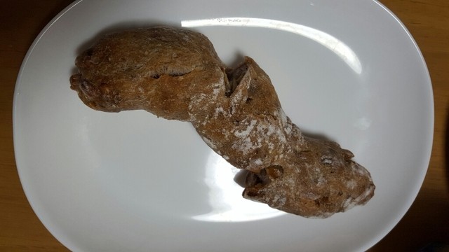木の実のシュタンゲンは、くるみ、マカダミアナッツ、アーモンドを練り込んだパン。全粒粉のようで、パン全体のほとんどがナッツのため驚くほどどっしりしています。パンはもっちりした感触でこれまた味わい深い。