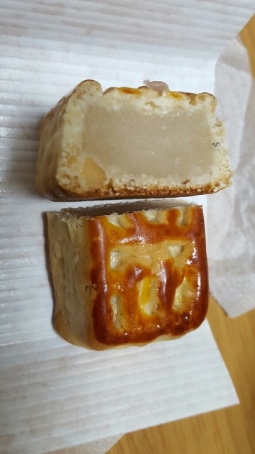 結び文初花は初めていただきました。こちらは、パッと見、月餅のような皮なのですが、こちらも香ばしく、手作りの味わいがします。中は、インゲン豆の餡が入っていて、クルミもちらほら。とても美味しかったです。