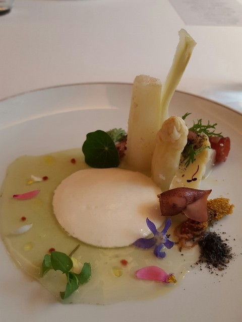フランス産ホワイトアスパラガスのポシェ ベーコンのムース