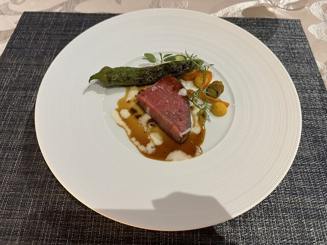 今回はコース料理をいただきました。普段はビュッフェなのですが、頼めばコース料理での提供もしてくれます。地の物を多く使い、夏らしい料理に仕上がっていました。盛り付けも涼しげで、見た目にも大変良かったです。