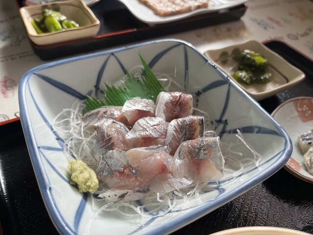 昼ごはんに11:00頃前日にも伺っていた同僚と訪問。同僚から店主のクセが強いと伺っていたので、余計な言葉は言わず、アジ刺身定食を注文。
