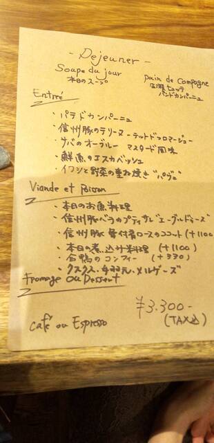 ランチタイムのお料理は3300円税・サ込みのみ。