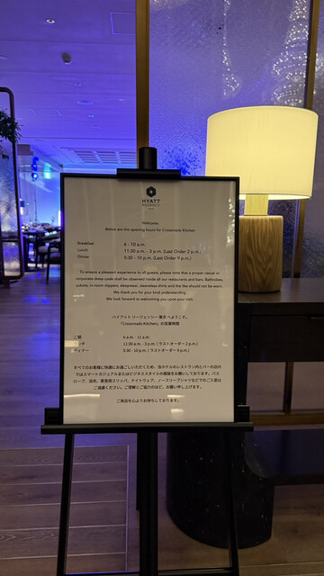開業45年、大規模リニューアルを終えたハイアットリージェンシー東京のレストラン。近未来な 演出が新鮮で楽しいの。LED アート空間を境に、目の前で調理してくれるライブキッチンと、テーブル席が分かれてます。ディナー限定のシーフードプラッターは伊勢エビやカニ、エビ、ハマグリなどが美しくお皿におさまって登場。そのほかライブキッチンで豊富な前菜や、ラム肉、牛肉、パイ包み料理や中華など、各国のお料理で好みのものを。