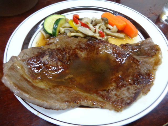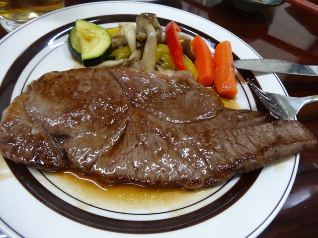ペンションの夕ご飯のメインは米沢牛のステーキ