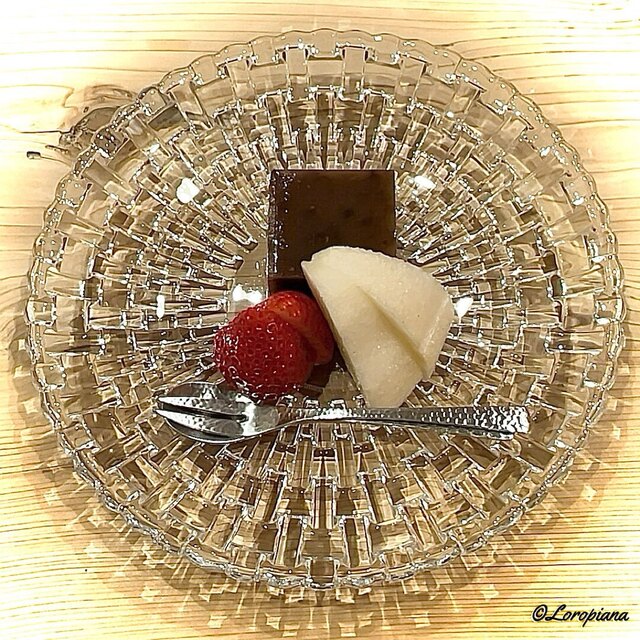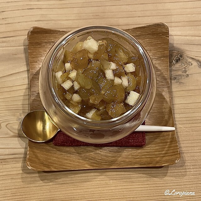 焙じ茶と洋梨のコンポートと柿と桑茶の羊羹