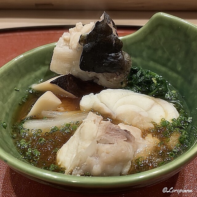 備長炭焼の甘鯛と生木耳と莢隠元の椀物