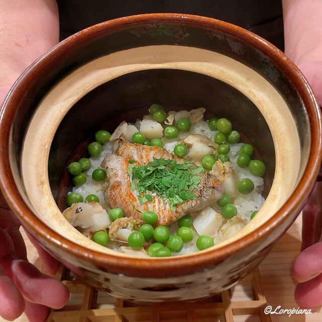 甘鯛と北上産の青椒の細切りを使った炊込みごはん