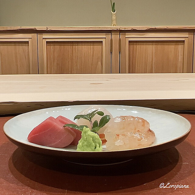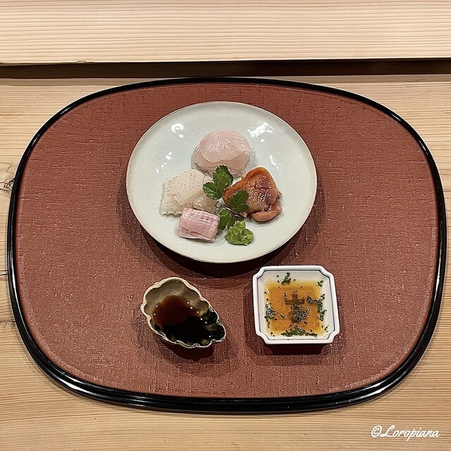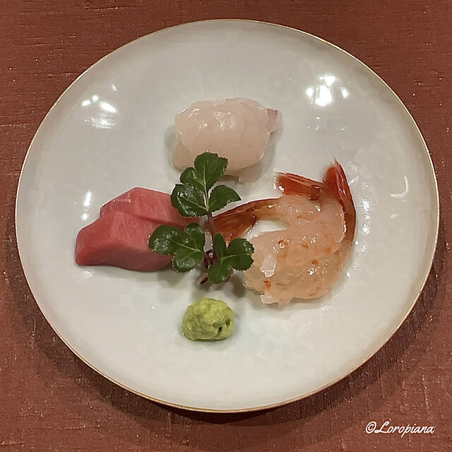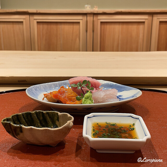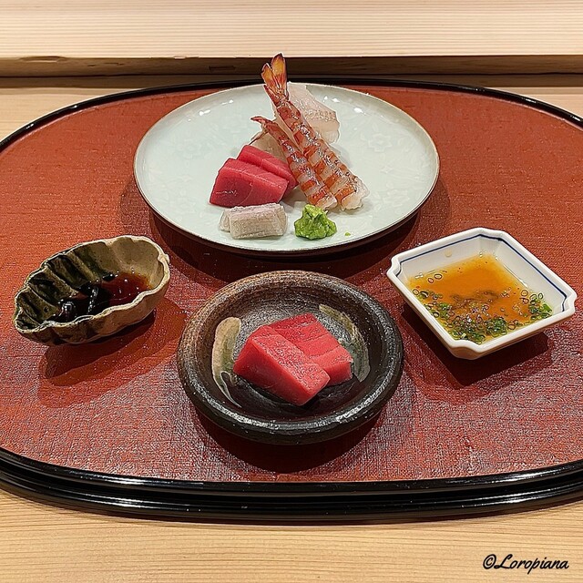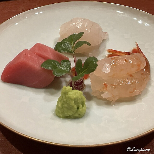 星鰈 縁側、天然本鮪 中トロ、車海老のあらい