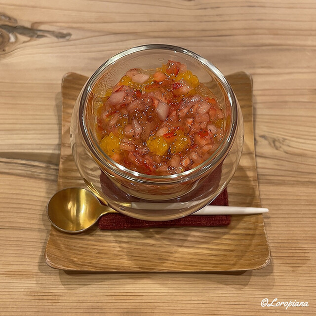 ブルーチーズのブランマンジェにイチゴと洋梨