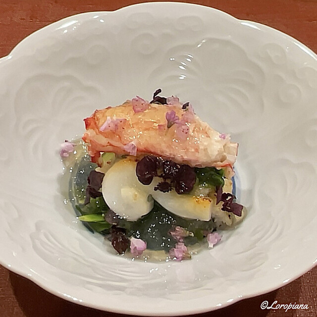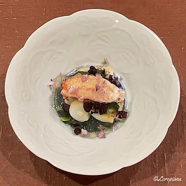 3/15発売のレストランガイドブック『Gault & Millau 2023 (ゴ・エ・ミヨ)』にも掲載されTabelog日本料理百名店に名を連ねTabelog Award 五年連続受賞店でありTabelog Award 2023でもBronze賞を受賞された北日本を代表する孤高の和食料理人 寺沢勇人店主が腕を揮われる『御料理 寺沢』さんへ定期再訪させていただきました。席はいつものカウンター席に取らせていただき先ずはYEBISUの『NEW ORIGIN』にて渇いた喉を潤し料理は『穴子(アナゴ)』の白焼(シラヤキ)、山菜(サンサイ)の屈み(コゴミ)の形に飾り包丁(カザリホウチョウ)を施した『槍烏賊(ヤリイカ)』、『毛蟹(ケガニ)』と甘草(カンゾウ)、花穂紫蘇(ハナホジソ)とむら芽紫蘇(ムラメジソ)の土佐酢(トサズ)ジュレ掛けの先付からスタート。懐石料理の順に倣い凌ぎには桜餅(サクラモチ)風に仕立てられた『煮鮑(ニアワビ)』と『海胆(ウニ)』の飯蒸し(イイムシ)。料理人の腕の見せどころの椀物には椀種(ワンダネ)に薄く葛(クズ)打ちした『鮎魚女(アイナメ)』と蓬麩(ヨモギフ)、『蕨(ワラビ)』に吸口(スイクチ)に花柚(ハナユズ)。吸い地(スイジ)は昆布出汁(コブダシ)と下支えに本彼節(ホンカレブシ)の鰹出汁(カツオダシ)。吸い地の旨味が五臓六腑に染み渡ります。向付には三陸宮城産の『河豚(フグ)』に天然『本鮪(ホンマグロ)』の中トロに活けの『ボタン海老(エビ)』。〆て二日目という『河豚(フグ)』の身は未だ活かっており好みの食感、『本鮪(ホンマグロ)』は上品な脂の旨味と甘み『ボタン海老(エビ)』は活の海老(エビ)が使われぷりっぷり。焼物には京都 物集女の『筍(タケノコ)』に石川 能登産の『のどぐろ』の備長炭焼(ビンチョウタンヤキ)、年々、高嶺(高値)の華になる『花山椒(ハナサンショウ)』添え。強肴には4Lサイズの『グリーンアスパラ』を使った茹でたアスパラを黄身酢(キミズ)とキャビアの塩味で味わう一皿。そしてコース料理の華である八寸代わりの旬菜盛合せには『河豚(フグ)の白子焼(シラコヤキ)』、桜のチップで薫香を付けられた自家製『鯨(クジラ)ベーコン』、屈み(コゴミ)、薑(ハジカミ)、『稚鮎(チアユ)』の南蛮漬(ナンバンヅケ)、『蛸(タコ)』と『筍(タケノコ)』のコロッケ、『海鼠(ナマコ)』酢の物、『鱸(スズキ)』の木の芽焼(キノメヤキ)という酒を呼ぶ酒肴(シュコウ)の数々。炊合せ代わりには美味さ⭐️⭐️⭐️⭐️⭐️五つ星、岩手県産『いわて牛』のサーロインをしゃぶしゃぶにし『花山椒(ハナサンショウ)』とともに味わい〆の食事は『毛蟹(ケガニ)』と『筍(タケノコ)』の炊込みごはんを香の物と味噌汁とともに味わい水菓子には『いちご』で覆われたブラマンジェ、茶にてひと通り。別室には6名の先客の方々、賑やかな話し声を耳にし春の到来を感じた口福な時間。
