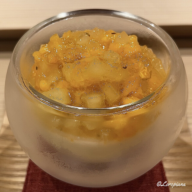 6月29日の夜は仕事を定時で切り上げ各駅停車の東北新幹線やまびこ号に飛び乗り目指したのは盛岡から2駅19分の北上です。そして向かった先は北上駅西口から徒歩12〜13分の位置に店を構えられTabelog日本料理部門の百名店に名を連ねTabelogAward 5年連続受賞店でもある寺沢勇人店主が孤軍奮闘腕を揮われる岩手を代表する日本料理店『御料理 寺沢』さんです。別室には七名の先客の団体さんの楽し気な笑い声が響く中、全3席のカウンターを独り占めにさせていただき水無月のお任せ懐石のコース料理を堪能させていただきました。先ずはユキノチカラの白ビールで渇いた喉を潤し料理は『蛸(タコ)』と山芋(ヤマイモ)の微塵切りに青梅(アオウメ)と花穂紫蘇(ハナホジソ)の三杯酢(サンバイズ)のジュレがけの先付からスタート。程良い酸味が暑さで疲弊した身体に心地良く染み渡ります。懐石コースの順に倣い凌ぎには北上産の『秘伝枝豆(ヒデンエダマメ)』を擦り卸した『ずんだ』を『キャビア』の塩味で愉しむ飯蒸し(イイムシ)をお腹に収め料理人の腕の見せどころの椀物には活の『菱蟹(ヒシガニ)』の雌蟹(メスガニ)を使った蟹真薯(カニシンジョウ)に蓴菜(ジュンサイ)の椀。吸口に青柚皮(アオユズガワ)が使われた昆布出汁(コブダシ)を主体に本枯節(ホンカレプシ)の一番出汁(イタバンダシ)で下支えされた吸い地の旨味と蟹真薯(カニシンジョウ)の美味しさに思わず悶絶。向付は白身魚の王様の異名を持ち昭和天皇がこよなく愛された『星鰈(ホシガレイ)』に星鰈(ホシガレイ)の縁側(エンガワ)、甘みが強い稀少な『白烏賊(シロイカ)』の炙り、閖上産の正真正銘の『本玉(ホンダマ)』≒『赤貝(アカガイ)』の盛込み。白眉は何と言っても『星鰈(ホシガレイ)』です。噛み込んだ歯を跳ね返すような弾力と上品な味わいは正に白身魚の王様の称号に相応しいもの。夏場はヒラメよりもカレイが美味しいと言われますが高級魚と称される眞子鰈(マコガレイ)を軽く上回る美味しさと味の差は想像以上。割醤油(ワリジョウユ)と卸したての遠野産の山葵(ワサビ)、チリ酢を使い分けいただきました。焼物には備長炭の炭床でじっくりと火入れされた口の中に旨味と脂がドバーと広がる能登産の超特大サイズの『赤鯥(アカムツ)』≒『のどぐろ』に幼雌穂(ヤングコーン)の炭火焼、もはや、ノドグロは飲み物状態。この絶品のノドグロを受け止めるのが綿屋の醸造元 金井酒造の『梅雨錦』特別純米酒です。そしてニヤニヤと笑みを浮かべながら供された鮑型の器の中には『鮑(アワビ)』の柔らか煮とふんわりとして甘みが強い『ムラサキ海胆(ウニ)』と葛切り(クズキリ)麺を自分なりに再構築し馬鈴薯澱粉(バレイショデンプン)と小麦粉(コムギコ)で造られたという盛岡冷麺(モリオカレイメン)を彷彿させる麺に鮑(アワビ)の肝(キモ)ソースを和えて味わう贅沢な海鮮涼麺(カイセンリャンメン)。更にはコース料理の華である八寸風の旬菜盛合せには揚げたて熱々の自家製の『薩摩揚()』に『磯螺貝()』の旨煮、皮目を軽く炙った深締めの『鯖(サバ)』に酢取り茗荷(ミョウガ)に『海鞘(ホヤ)』、伽羅蕗(キャラブキ)に酸漿(ホオズキ)、酸漿(ホオズキ)の中には『穴子(アナゴ)』の蕃茄煮(バンカニ)、自家製の『鯨(クジラ)』ベーコンに無花果(イチヂク)の酒を呼ぶ酒肴の数々、そして食事前に供された炊合せには29日の肉の日なので久しぶりに造ってみましたという『岩中豚(イワチュウブタ)』を使った口の中でホロホロと解ける『豚(ブタ)の角煮(カクニ)』に舌鼓を打ち締めの食事は備長炭焼の『甘鯛』と北上産の青椒の細切りを使った炊込みごはんを赤だし椀と自家製の糠漬の香の物とともにいただき水菓子には宮崎産の『マンゴー』とゴールドキウイで覆われたブラマンジェをいただき締められた昨夜の口福な時間に感謝。