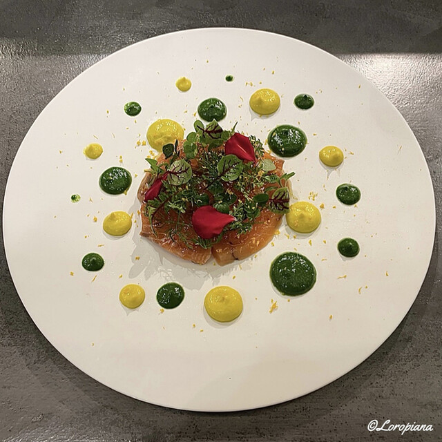 Terlan Winkl Sauvignonと秋鮭の冷製タリオリーニ