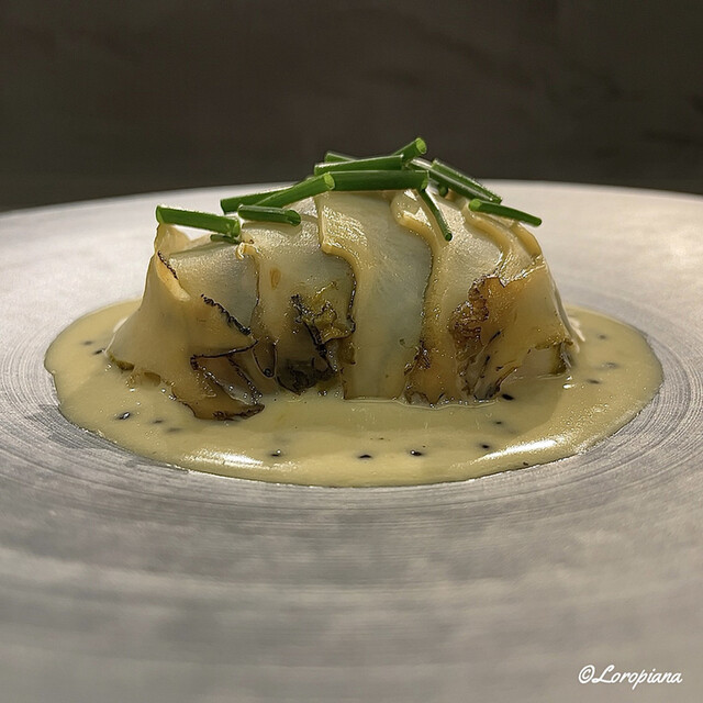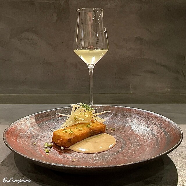 Planeta Chardonnayと菱蟹のラザニア セロリのスキューマとともに