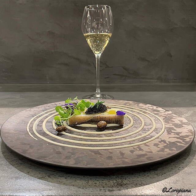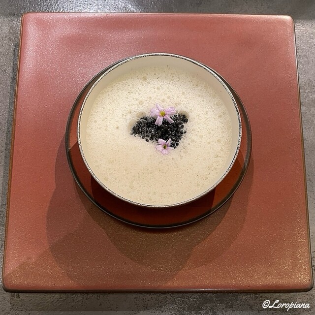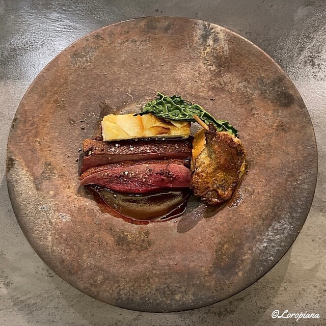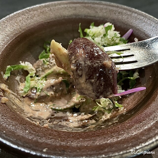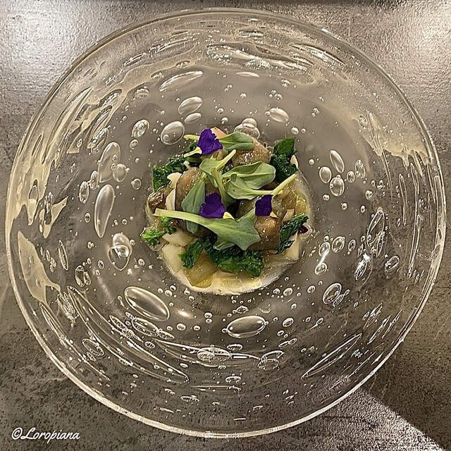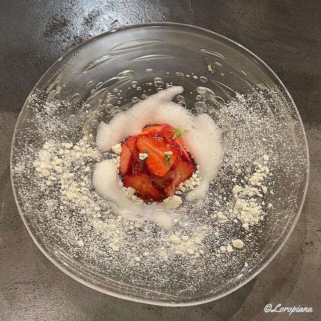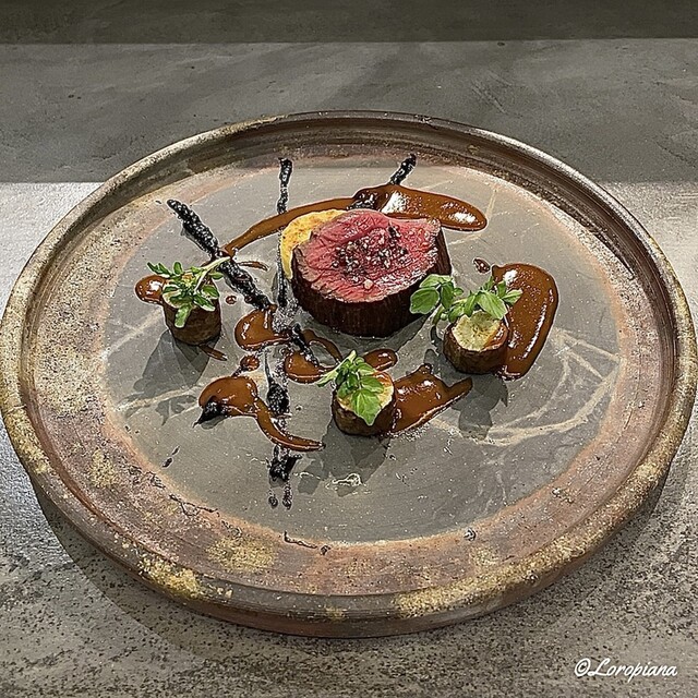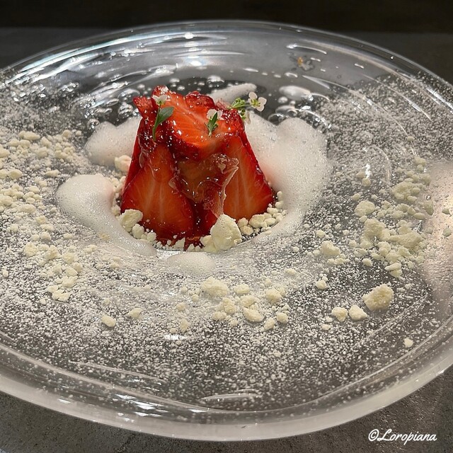 春分の日の休日の夜はGault&Millau(ゴ・エ・ミ・ヨ)や同業のシェフが選ぶヒトサラBestChef&Restaurant、Tabelog Award Bronze、日本人が選ぶ世界の人々のための日本のレストラン10軒『Destination Restaurants 2023』にTabelogの百名店等々、今では日本中から注目される池見良平オーナーシェフとソムリエールでありパティシエールでもある池見悦子マダムが最高のおもてなしで迎えてくれる『Casa del Cibo』さんへ再訪させていただきました。席はいつものオープンキッチン前のシェフズカウンター席に取らせていただきアペリティーヴォには『Fontanafredda Contessa Rosa Alta Langa Brut Rosé』を料理は奥津軽いのしし牧場さんの屠殺して二時間後、肝炎ウイルス検査済の『イノシシのレバー』とエミーズファームさんのエグ味は控えめで過食率の高いプンタレッラのインサラータのエントラータからスタート。生でも食べられるレバーを低温でじっくりと火入れされ限りなくあり禁断の味と食感に近く角がキッチリと立ちぷりっぷりで甘みのあるレバーに悶絶。アンティパストは多皿構成で前半には春を告げる魚と言われる『鰊(ニシン)』の冷製燻製を十和田産の本山葵(ホンワサビ)を使ったわさびソースとともに味わう冷前菜、後半には香りの高さと食感が国産のソレとは全くの別物と言っても過言ではないイタリア産の『ホワイトアスパラ』のムニャイヤと緑色を帯びた殻に卵黄の割合が30%以上という田子産の『緑の一番星』と呼称される鶏卵(ケイラン)を使ったウ・ポシェとフォンドゥータの温前菜の温度帯が異なる二皿を愉しませていただきプリモ・ピアットは全三皿です。前半には八戸産の『桜鱒(サクラマス)』とウイキョウのオレンジが香るクリームソースの冷製タリオリーニ、中盤には八戸産の『毛蟹(ケガニ)』とアピオスのリピエーノを使いリピエーノに合わせて生地の厚みを変えモチっとした食感が楽しめるメッツァルーナを毛蟹(ケガニ)のみそのソースと蕗の薹(フキノトウ)のスキューマで味わう一皿、そして後半には青森産の地鶏『シャモロック』の肉とレバーと胡桃のラグーで味わうビーツを練り込まれたタリアテッレの三皿を味わいセコンド・ピアットの魚料理のペッシェには太平洋の赤いダイヤモンドとも称される真っ赤な魚体にとろけるような脂ののりの600㌘クラスの特大サイズの『喜知次(キチジ)』を贅沢にも半身も使われたキンキンの鱗焼(ウロコヤキ)と滅多にお目にかかる機会の無い十和田産の大きな天然滑子(テンネンナメコ)のスーゴ仕立て。獲れたての新鮮な『喜知次(キチジ)』は脂のりが素晴らしいばかりではなく旨味が凝縮されており口の中でとろけます。これを『喜知次(キチジ)』をはじめとして八戸産の魚のスープ・ド・ポワソンで味わうのですから悶絶必至のひと皿です。そして肉料理のカルネには青森県産の『馬(カヴァッロ)』のテールの赤ワイン煮込みです。牛のテールの煮込みは口にされることは多いと思いますが馬のテールは自分自身、初めての経験でありました。ゼラチン質たっぷりで繊維状にほろほろと崩れる感じの煮込みはとろっとろの仕上がりコントルノには牛蒡(ゴボウ)と独活(ウド)のコンフィ添えの皿をいただきドルチェには〆は悦子マダムの手により作られた八戸産のイチゴ紅ほっぺのマリネとピスタチオのメレンゲとマスカルポーネの二種のジェラートのドルチェとエスプレッソのドッピオ、更にはサプライズで生誕記念にと『Buon Compleanno Loropiana』と描かれたトルタ・アル・チョコラートをアルビコッカとともにいただき〆られました。池見シェフ渾身の真のリストランテ料理に悦子マダムの料理にぴたりと寄り添う絶妙なペアリングワインで気持ち良くさせていただき満たされた昨夜の至福で口福な時間に感謝です。