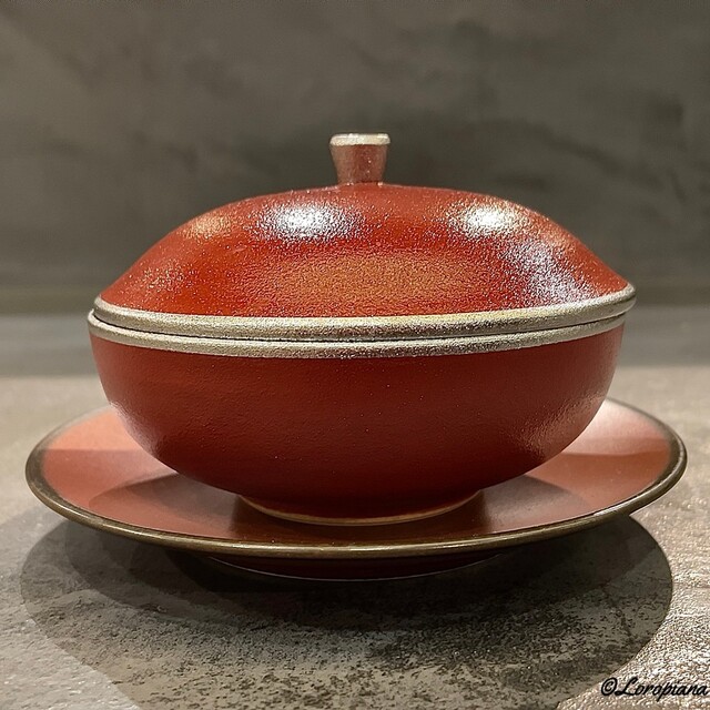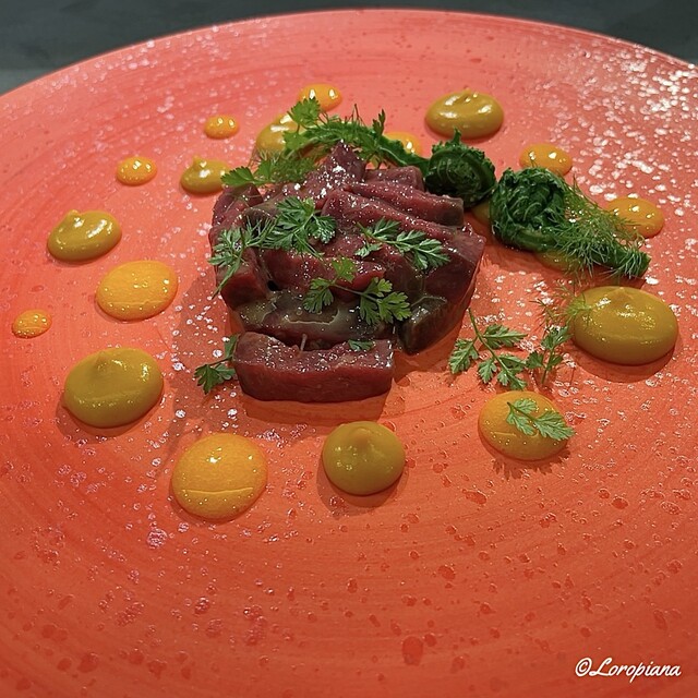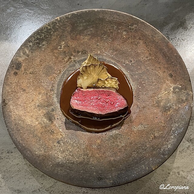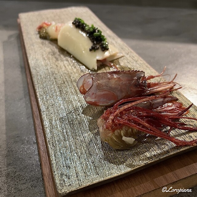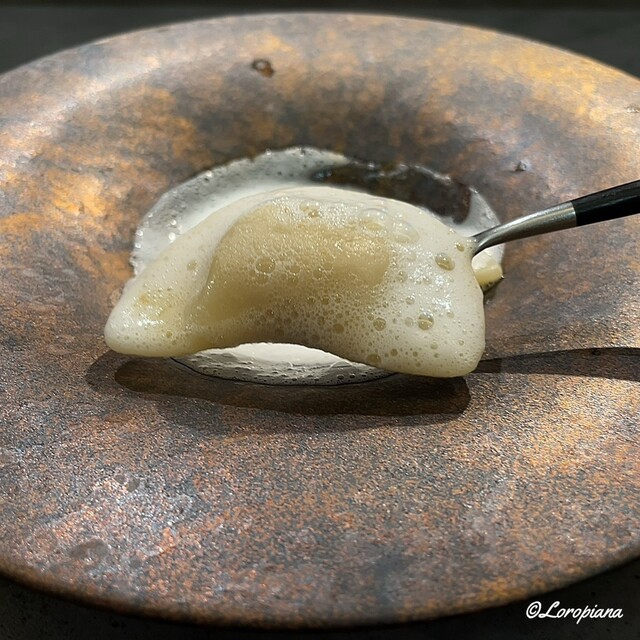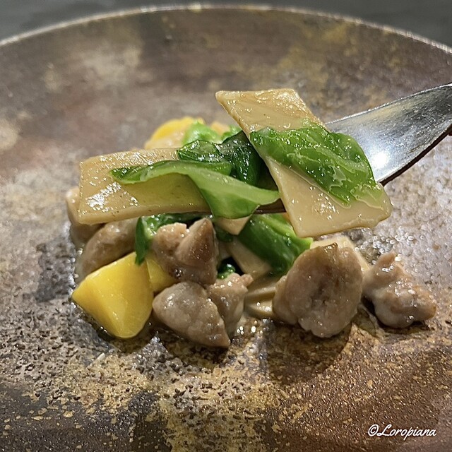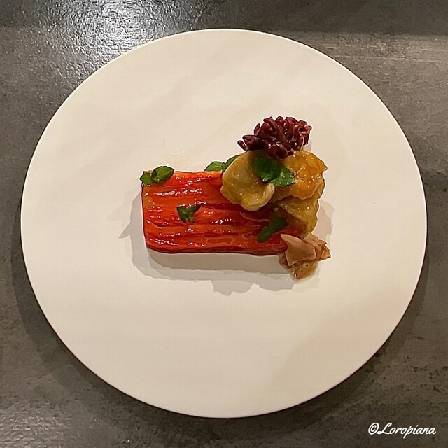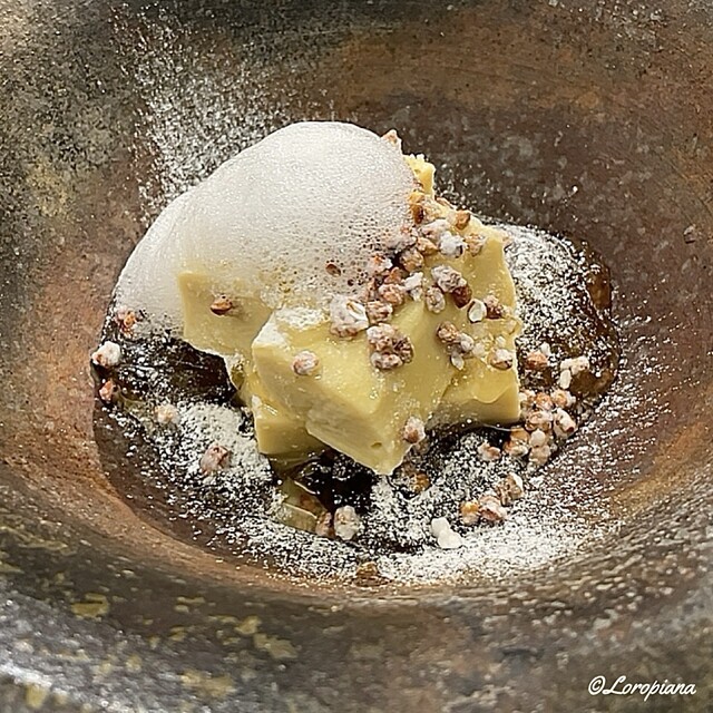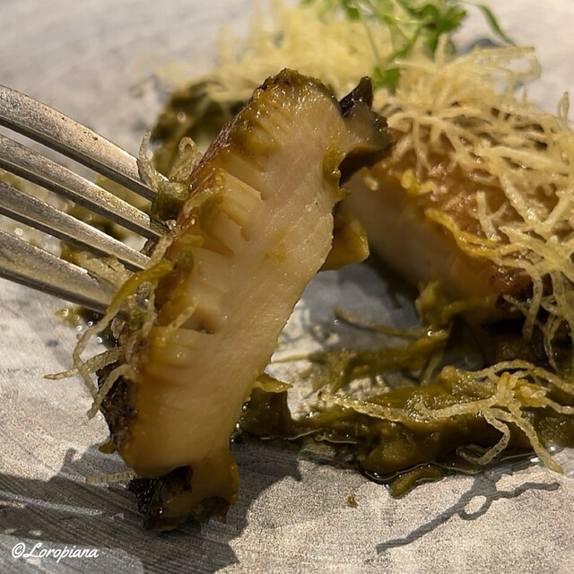 春分の日の休日の夜はGault&Millau(ゴ・エ・ミ・ヨ)や同業のシェフが選ぶヒトサラBestChef&Restaurant、Tabelog Award Bronze、日本人が選ぶ世界の人々のための日本のレストラン10軒『Destination Restaurants 2023』にTabelogの百名店等々、今では日本中から注目される池見良平オーナーシェフとソムリエールでありパティシエールでもある池見悦子マダムが最高のおもてなしで迎えてくれる『Casa del Cibo』さんへ再訪させていただきました。席はいつものオープンキッチン前のシェフズカウンター席に取らせていただきアペリティーヴォには『Fontanafredda Contessa Rosa Alta Langa Brut Rosé』を料理は奥津軽いのしし牧場さんの屠殺して二時間後、肝炎ウイルス検査済の『イノシシのレバー』とエミーズファームさんのエグ味は控えめで過食率の高いプンタレッラのインサラータのエントラータからスタート。生でも食べられるレバーを低温でじっくりと火入れされ限りなくあり禁断の味と食感に近く角がキッチリと立ちぷりっぷりで甘みのあるレバーに悶絶。アンティパストは多皿構成で前半には春を告げる魚と言われる『鰊(ニシン)』の冷製燻製を十和田産の本山葵(ホンワサビ)を使ったわさびソースとともに味わう冷前菜、後半には香りの高さと食感が国産のソレとは全くの別物と言っても過言ではないイタリア産の『ホワイトアスパラ』のムニャイヤと緑色を帯びた殻に卵黄の割合が30%以上という田子産の『緑の一番星』と呼称される鶏卵(ケイラン)を使ったウ・ポシェとフォンドゥータの温前菜の温度帯が異なる二皿を愉しませていただきプリモ・ピアットは全三皿です。前半には八戸産の『桜鱒(サクラマス)』とウイキョウのオレンジが香るクリームソースの冷製タリオリーニ、中盤には八戸産の『毛蟹(ケガニ)』とアピオスのリピエーノを使いリピエーノに合わせて生地の厚みを変えモチっとした食感が楽しめるメッツァルーナを毛蟹(ケガニ)のみそのソースと蕗の薹(フキノトウ)のスキューマで味わう一皿、そして後半には青森産の地鶏『シャモロック』の肉とレバーと胡桃のラグーで味わうビーツを練り込まれたタリアテッレの三皿を味わいセコンド・ピアットの魚料理のペッシェには太平洋の赤いダイヤモンドとも称される真っ赤な魚体にとろけるような脂ののりの600㌘クラスの特大サイズの『喜知次(キチジ)』を贅沢にも半身も使われたキンキンの鱗焼(ウロコヤキ)と滅多にお目にかかる機会の無い十和田産の大きな天然滑子(テンネンナメコ)のスーゴ仕立て。獲れたての新鮮な『喜知次(キチジ)』は脂のりが素晴らしいばかりではなく旨味が凝縮されており口の中でとろけます。これを『喜知次(キチジ)』をはじめとして八戸産の魚のスープ・ド・ポワソンで味わうのですから悶絶必至のひと皿です。そして肉料理のカルネには青森県産の『馬(カヴァッロ)』のテールの赤ワイン煮込みです。牛のテールの煮込みは口にされることは多いと思いますが馬のテールは自分自身、初めての経験でありました。ゼラチン質たっぷりで繊維状にほろほろと崩れる感じの煮込みはとろっとろの仕上がりコントルノには牛蒡(ゴボウ)と独活(ウド)のコンフィ添えの皿をいただきドルチェには〆は悦子マダムの手により作られた八戸産のイチゴ紅ほっぺのマリネとピスタチオのメレンゲとマスカルポーネの二種のジェラートのドルチェとエスプレッソのドッピオ、更にはサプライズで生誕記念にと『Buon Compleanno Loropiana』と描かれたトルタ・アル・チョコラートをアルビコッカとともにいただき〆られました。池見シェフ渾身の真のリストランテ料理に悦子マダムの料理にぴたりと寄り添う絶妙なペアリングワインで気持ち良くさせていただき満たされた昨夜の至福で口福な時間に感謝です。