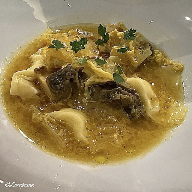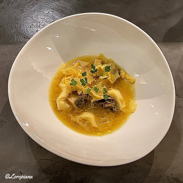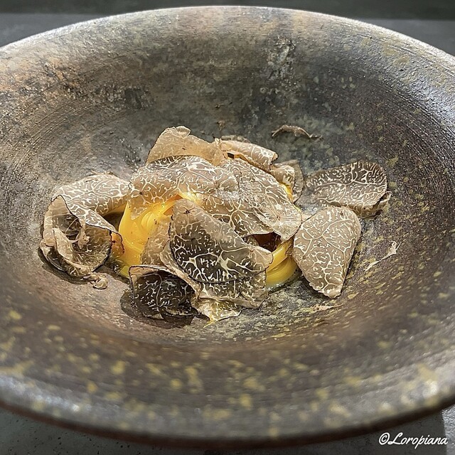 卵黄とトリュフと香茸のブロードで味わうリーソ・アル・サルト