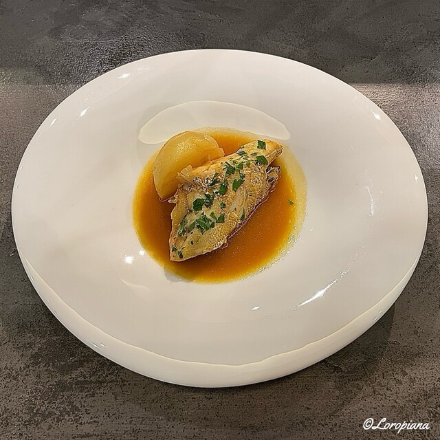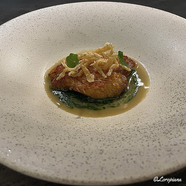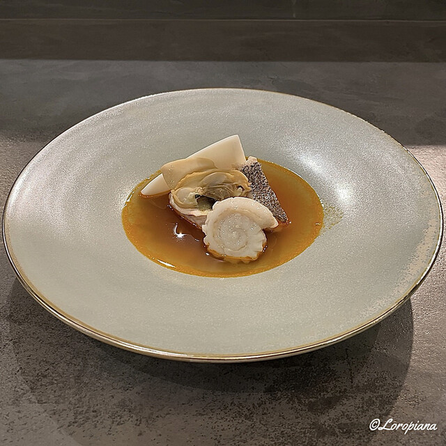 喜知次のリゾット・アッラ・ミラネーゼと白魚のフリットのズッパ・ディ・ペッシェ