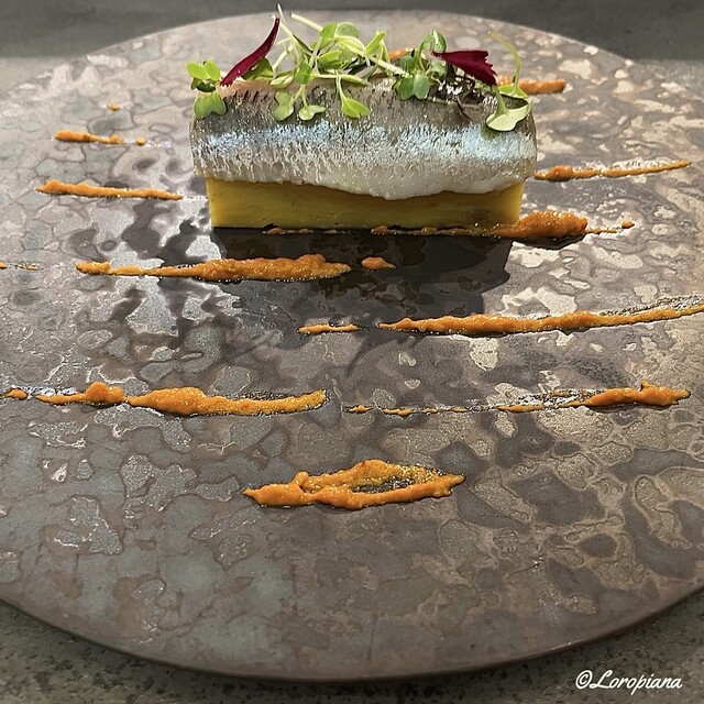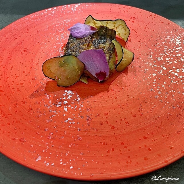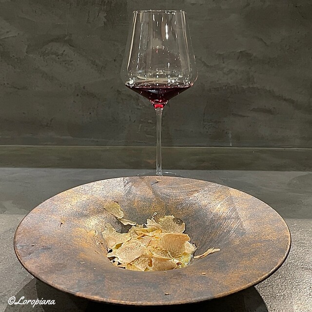L'Arco Rosso del Veroneseと穴子のインパデッラと牛蒡のコンフィと牛蒡のチップスと自家製の実山椒