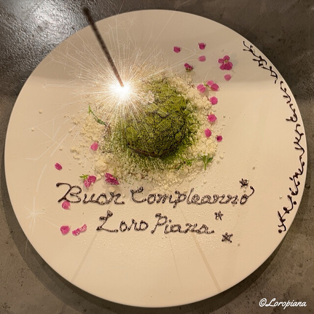Buon Compleanno Loropianaと描かれたトルタ・アル・チョコラート