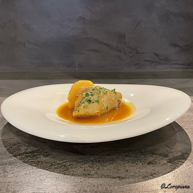 滑太鰈とインカのめざめのテリーナ キャビアと白花豆のソース