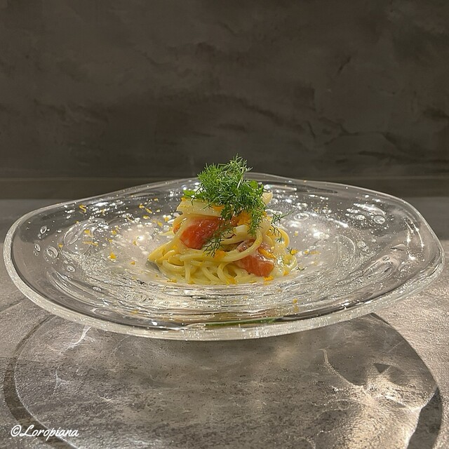 秋鮭と秋鮭の白子で味わう冷製タリオリーニ