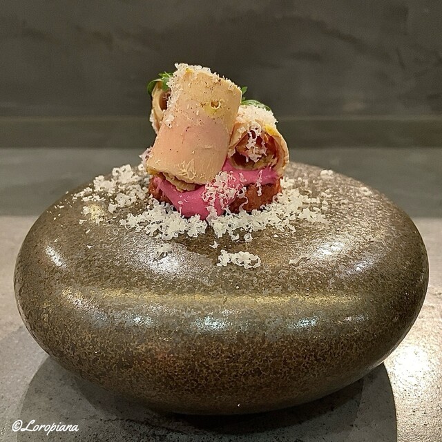 フォワグラテリーナとジャージーミルクのマスカルポーネとビーツの酢フォルマ―ト