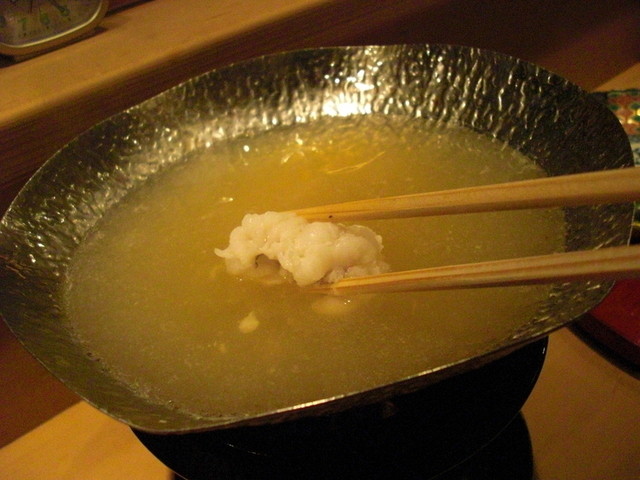 鱧しゃぶ は目の前の時計で時間を見ながら約20秒…しゃぶ、しゃぶ、しゃぶ。と(笑)。