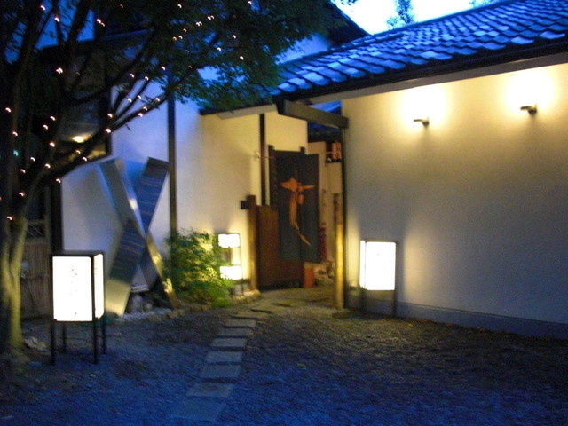 玉砂利の敷かれた店内へ続く飛び石畳の上を渡って店内へ向います。