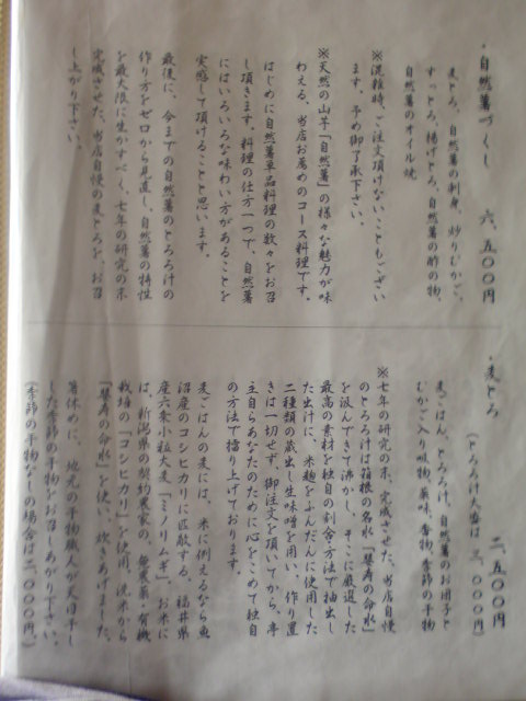 感想は、、、自然薯の存在感がいいですね!かなりの拘りを感じました。