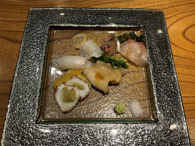 造り(カンパチ、カツオ、さわら、アジ、コウイカ)