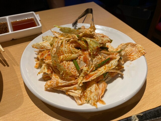普通のキムチもあったけれど、お店おすすめの生キムチをいただく。浅漬けで白菜がシャキシャキと歯ごたえ良く、さっぱりしていてお肉とお肉の合間の口直しにもGOOD!