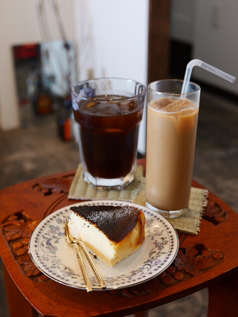 バスクチーズケーキ(650円) アイスコーヒー(550円) アイスカラメルラテ(650円)