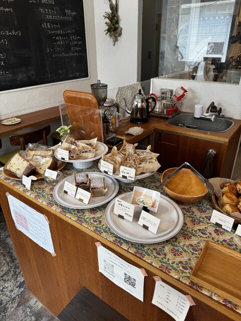 ケーキセット(1000円) ・季節のタルト(スパイスパンプキン) ・ハーブティ(よもぎ)