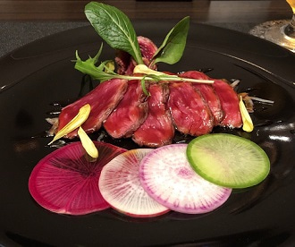三品目は 熟成イチボ ローストビーフ 甜醤ソース