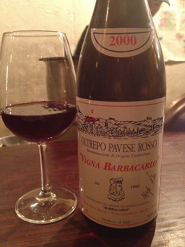 すでに酔っぱらいな感じで飲んでいると、下のお店からオーナーさんがいらっしゃって、ココによく来ている友人と談笑。最後に特別のワインをとのオーダに「2000OLTREPOPAVESEROSSOVIGNABARBACARLO」を出していただきました。一口いただくとびりりとした微発砲の口当たりに、まろやかに熟成されたタンニンと酸のバランスがすてきでドライな飲み口。週末の最後を飾るにはすごくいい。さすが、特別なワインですねw