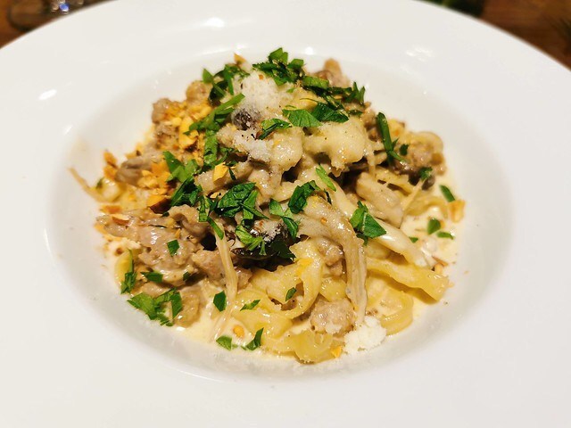 食感のいい手打ちパスタに濃厚なクリームソース、そしてサルシッチャの旨味と塩味で絶妙に美味。