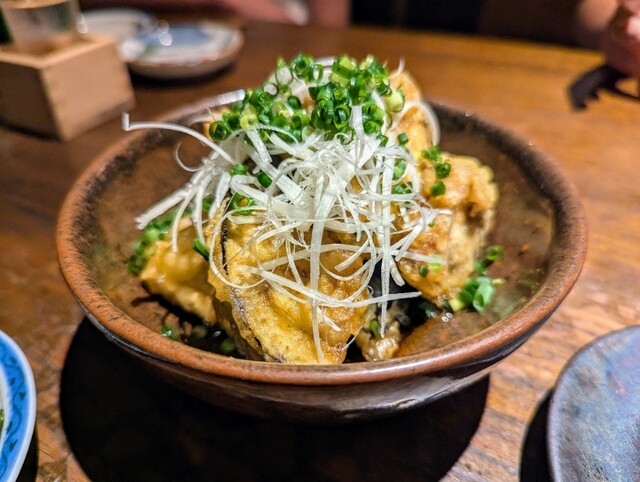 「米茄子の揚げ出し」は、サクサクのナスと甘めのタレの相性が抜群でした。