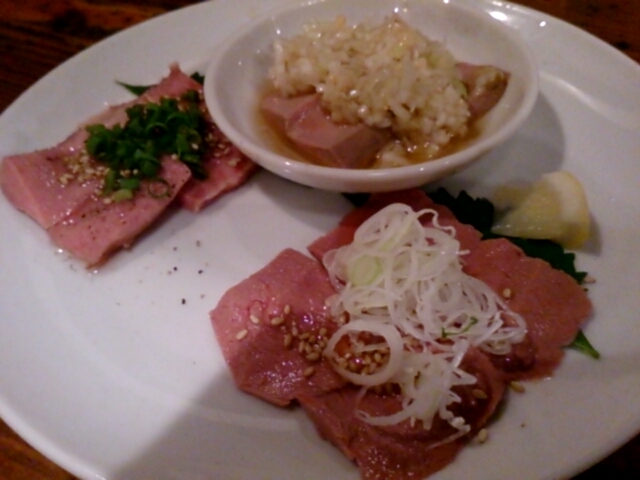それと、刺身3種盛りとゆでタンを注文。
